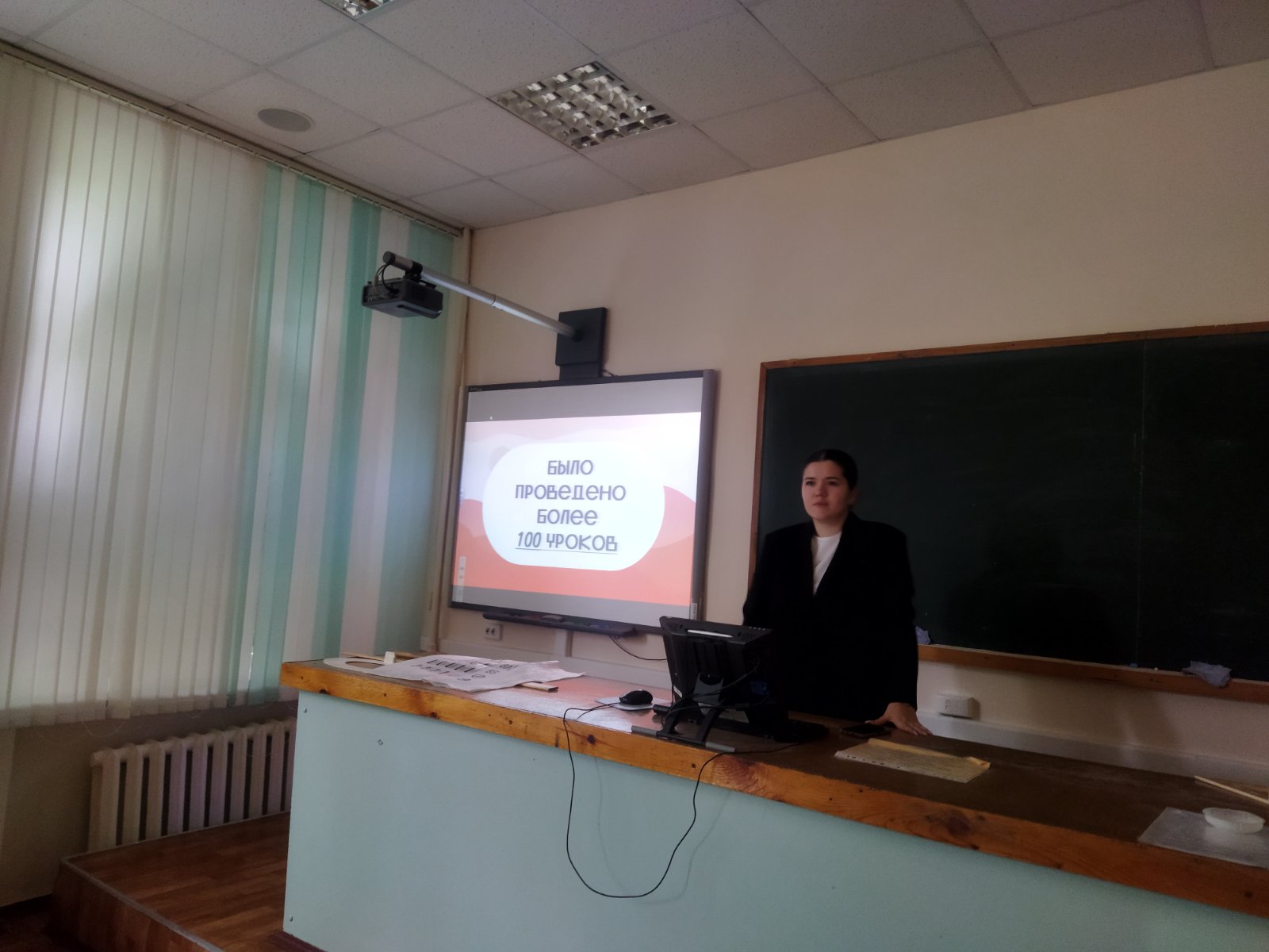 На отчетной конференции по практике представители каждой группы студентов, находившейся в школе, выступили с сообщениями о своей работе. Сообщения были представлены в виде презентаций и видеоотчетов, в которые были включены фотографии и видеофрагменты уроков, проведенных студентами, а также фотографии внеклассных мероприятий.