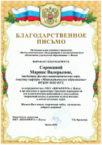 Доценты кафедры "Математическое образование" Никитина О.Г. и Сорокина М.В. награждены благодарственными письмами за сотрудничество с МКУ "ЦКО и МОУО"...